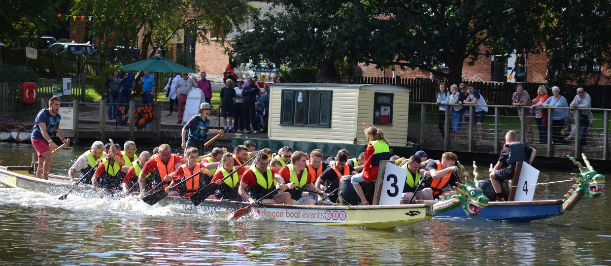 Taking place on Sunday 11th September 2016 at the Stratford-upon-Avon Boat club in the River Avon, we were fortunate to have such warm & sunny conditions. The Shakespeare Hospice called teams across Warwickshire to compete in their Dragon Boat Racing event with numbers of 12-17 members taking part in the fun and competitive races during the day.